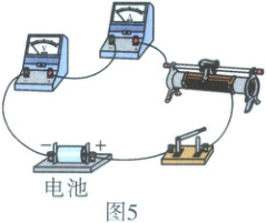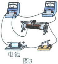 ②用图3所示电路测量干电池电动势和内阻。电压表读数、电流表读数、干电池内阻和电流表内阻分别用$U$、$I$、$r$和$R_A$表示。则干电池电动势$E = U +$(用$I$、$r$和$R_A$表示)。
