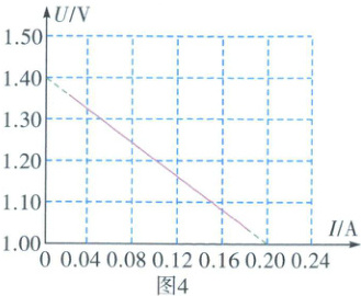③调节滑动变阻器测得多组电表读数,作出图4所示的$U - I$图像。则待测干电池电动势$E =$$V$(保留3位有效数字)、内阻$r =$$\Omega$(保留1位小数)。