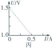 (3)根据实验中电流表和电压表的示数得到了如图丙所示的$U - I$图像,则干电池的电动势$E =$$V$,内电阻$r =$$\Omega$。