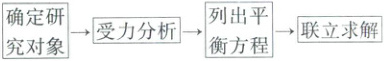 $\xrightarrow[研究对象]{确定研} \xrightarrow[分析]{受力} \xrightarrow[方程]{列出平} \xrightarrow[求解]{联立}$