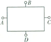 由此可知,$B$、$C$、$D$ 三点电势相等,$A$ 点电势比它们高 $1.5 V$。因此,箱内只有一处电池,且接线柱 $A$ 应接电池正极,$B$、$C$、$D$ 三点间无电池。