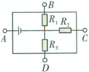 电池正极接 $A$,$B$、$C$、$D$ 三点间分别接 $R_1$、$R_2$、$R_3$。