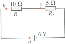解 使用欧姆挡时,被测元件必须与外电路断开。如果黑表笔接在$b$端,表头指针有示数,则说明$R_1$与电源间的导线是断的,此时所测得的数据应是电源的电动势$6\ V$,电路中的电流$I=\frac{E}{R_1 + R_2}=0.4\ A$;如果指针不偏转,说明$R_1$与电源之间的导线是连通的,而$R_1$与$R_2$、$R_2$与电源之间的导线中的一根是断的,黑表笔接在$c$点时,如果表头指针有示数,说明$R_1$与$R_2$间的导线是断的,此时电路中的电流$I'=\frac{E}{R_2}=1.2\ A$。
