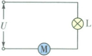 【想一想】若上题中电动机的转子突然卡住(灯泡电阻不变),则电路中的电流$ I' $为多少?整个电路消耗的电功率$ P'_{ 总} $为多少?