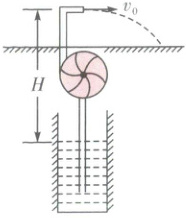 某节水喷灌系统如图所示,水以 $v_0=15 m/s$ 的速度水平喷出,每秒喷出水的质量为 $2.0 kg$。喷出的水是从井下抽取的,喷口离水面的高度保持 $H=3.75 m$ 不变。水泵由电动机带动,电动机正常工作时,输入电压为 $220 V$,输入电流为 $2.0 A$。不计电动机的摩擦损耗,电动机的输出功率等于水泵所需要的输入功率。已知水泵的抽水效率(水泵的输出功率与输入功率之比)为 $75\%$,忽略水在管道中运动的机械能损失,$g$ 取 $10 m/s^2$,则()。