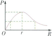 在纯电阻电路中,当用一个固定的电源( 设$E$、$r$是定值 )向变化的外电阻供电时,关于电源的输出功率$P$随外电阻$R$变化的规律如图所示。则下列判断正确的是(