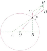 思路点拨,小球静止在圆轨道内侧$P$点,圆轨道对小球的支持力沿半径方向,因此$A$、$B$处电荷对小球的库仑力的合力也沿半径方向,与支持力平衡,库仑力的矢量合成如图所示,由正弦定理可得$\frac{F_A}{\sin\angle CPH}=\frac{F_B}{\sin\angle CHP}$,又$\angle CPH = \angle OPB$,$\angle CHP = \angle HPD = \angle APO$,$\triangle APO$中$\frac{AP}{\sin(\pi-\angle POB)}=\frac{AO}{\sin\angle APO}$,同理可得$\frac{BP}{\sin\angle POB}=\frac{BO}{\sin\angle BPO}$,由库仑定律知$F_A = k\frac{Q_1q}{AP^2}$,$F_B = k\frac{Q_2q}{BP^2}$,联立解得$Q_1:Q_2 = 2n^3:1$,