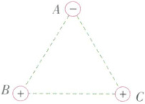 2.(知识点 1、2·能力点 1)如图所示,有三个点电荷$A$、$B$、$C$位于一个等边三角形的三个顶点上,已知三角形边长为$1 \mathrm{cm}$,$B$、$C$电荷量为$q_{B}=q_{C}=1 × 10^{-6} \mathrm{C}$,$A$电荷量为$q_{A}=-2 × 10^{-6} \mathrm{C}$,静电力常量$k = 9.0 × 10^{9} \mathrm{N · m^{2}/C^{2}}$,$A$所受$B$、$C$两个电荷的静电力的合力$F$的大小和方向为(