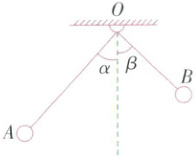 7.(2025·深圳中学月考·知识点 1、2·能力点 1)(多选)如图所示,天花板上固定一个光滑小环$O$,一绝缘细绳穿过光滑小环,两端分别与带电小球$A$、$B$连接,$A$、$B$的质量分别为$m_{1}$和$m_{2}$,带电荷量分别为$q_{1}$、$q_{2}$。系统静止时,小球$A$、$B$与光滑小环$O$间的距离分别为$l_{1}$、$l_{2}$,细绳$OA$段与竖直方向的夹角为$\alpha$,细绳$OB$段与竖直方向的夹角为$\beta$,两带电小球均可视为点电荷,则以下关系式正确的是(