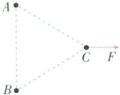 9.(知识点 2·能力点 3)如图所示,光滑绝缘水平面上固定着$A$、$B$、$C$三个带电小球,它们的质量均为$m$、间距均为$r$,$A$、$B$带正电,电荷量均为$q$,静电力常量为$k$。现对$C$施一水平力$F$的同时放开三个小球,欲使三个小球在运动过程中保持间距$r$不变,求:
