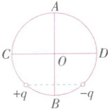$AB$和$CD$为圆上两条相互垂直的直径,圆心为$O$。将电荷量分别为$+q$和$-q$的两点电荷放在圆周上,其位置关于$AB$对称且距离等于圆的半径,如图所示。要使圆心处的电场强度为零,可在圆周上再放一个适当的点电荷$Q$,则该点电荷$Q$()。