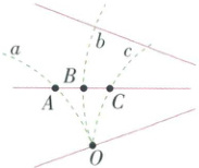 5.(知识点4·能力点2)(多选)如图所示为某一点电荷所形成的电场中的一簇电场线,$a$、$b$、$c$ 三条虚线为三个带电粒子以相同的速度从 $O$ 点射入电场后的运动轨迹,其中 $b$ 虚线为一圆弧,$AB$ 的长度等于 $BC$ 的长度,且三个粒子的电荷量大小相等,不计粒子重力,则以下说法正确的是 (