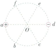 6.(知识点3·能力点3)如图所示,以 $O$ 点为圆心的圆周上有六个等分点 $a$、$b$、$c$、$a⁺$、$d$、$e$、$f$。等量正、负点电荷分别放置在 $a$、$d$ 两处时,在圆心 $O$ 处产生的电场强度大小为 $E$。现改变 $a$ 处点电荷的位置,使 $O$ 点的电场强度改变,下列叙述正确的是(