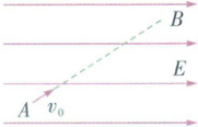 如图所示,空间有一水平匀强电场,在竖直平面内有一初速度为$ v_0 $的带电微粒,仅在重力和电场力作用下沿图中虚线由$ A $点运动至$ B $点,其能量变化情况是()。