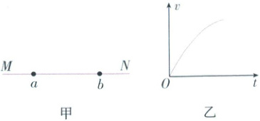 (多选)如图甲所示,直线$ MN $表示某电场中一条电场线,$ a、b $是线上的两点,将一带负电荷的粒子从$ a $点由静止释放,粒子从$ a $点运动到$ b $点过程中的$ v-t $图线如图乙所示。设$ a、b $两点的电势分别为$ \varphi_a、\varphi_b $,场强大小分别为$ E_a、E_b $,粒子在$ a、b $两点的电势能分别为$ W_a、W_b $,不计重力,则有()。