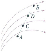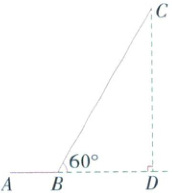 (2)如图所示,过$ C $点作$ AB $延长线的垂线,设垂足为$ D $。由公式得$ U_{AB} = U_{AC} + U_{CB} = -15\ V $,因为$ \overline{BC} = 4\overline{AB} $,由几何知识可得$ \overline{BD} = 2\overline{AB} $,所以$ U_{BD} = 2U_{AB} = -30\ V $,所以$ U_{BD} = -U_{CB} = U_{BC} $,所以$ C $点和$ D $点的电势相等,$ CD $为匀强电场的等势线,故电场线与$ AB $重合,且由$ B $指向$ A $,$ U_{CB} = E · \overline{BD} $,$ E = 300\ V/m $。