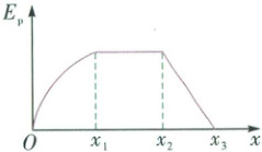 一带正电微粒只在静电力作用下沿$ x $轴正方向运动,其电势能随位移$ x $变化的关系如图所示,其中$ O - x_1 $段是曲线,$ x_1 \sim x_2 $段是平行于$ x $轴的直线,$ x_2 \sim x_3 $段是倾斜直线,则下列说法不正确的是()。