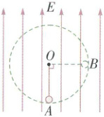 如图所示,竖直向上的匀强电场中,用长为 $L$ 的绝缘细线系住一带电小球,在竖直平面内绕 $O$ 点做圆周运动。图中 $A$、$B$ 为圆周上的两点,$A$ 点为最低点,$B$ 点与 $O$ 点等高。当小球运动到 $A$ 点时,细线对小球的拉力恰好为0,已知小球的电荷量为 $q$($q > 0$)、质量为 $m$,$A$、$B$ 两点间的电势差为 $U$,重力加速度大小为 $g$,求:
