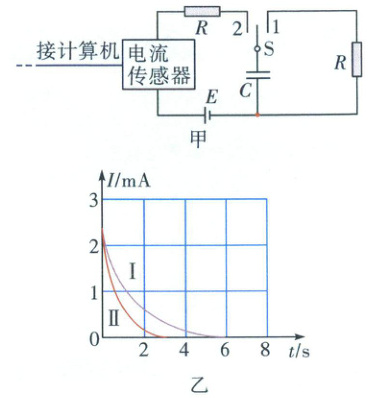 ③ 观察并保存计算机屏幕上的$ I-t $图线,得到图线Ⅰ(图乙Ⅰ);