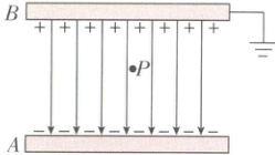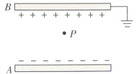 如图所示,$A$、$B$两块平行带电金属板,$A$板带负电,$B$板带正电并与大地相连接,$P$为两板间一点。若将一块玻璃板插入$A$、$B$两板间,则$P$点电场强度和电势将()。