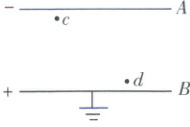 8.(知识点2、3)如图所示的平行金属板电容器的电容为$C=2 × 10^{-4} F$,极板 A、B 之间可以看成匀强电场,场强大小$E = 1.2 × 10^{3} V/m$,极板间的距离为$L = 5 cm$,电场中$c$点到 A 板、$d$点到 B 板的距离均为$0.5 cm$,$B$板接地。求: