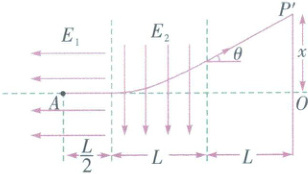 (2)电子刚射出电场 $E_2$ 时的速度方向与 $AO$ 连线的夹角 $\theta$ 的正切值 $\tan\theta$;