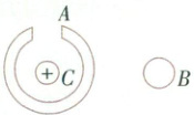 如图所示,$A$为空心金属球,$B$为金属球,$A$、$B$原来不带电,将另一带正电的小球$C$从$A$球开口处放入$A$球中央,不接触$A$球,然后用手接触一下$A$球,再用手接触一下$B$球,最后移走$C$球,则()。