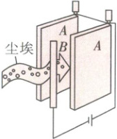 3.(2024·宜昌月考·知识点 1)如图所示,静电除尘器由板状收集器 A 和线状电离器 B 组成。A 接到几千伏高压电源的正极,B 接到高压电源的负极,它们之间有很强的电场,而且距 B 越近,电场强度越大。B 附近空气中的气体分子更容易被电离,成为正离子和电子。正离子被吸到 B 上,得到电子,又成为分子。电子在向着 A 运动的过程中,遇到烟气中的粉尘,使粉尘带电。粉尘被吸附到 A,最后在重力的作用下落入下面的漏斗中。关于该静电除尘器,下列说法正确的是(