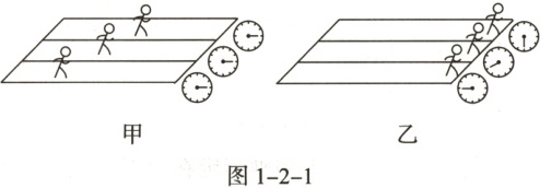 9. 百米赛跑过程中的某时刻甲、乙两运动员位置的示意图如图1-2-4所示。