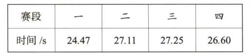 1. 某运动员在运动会上夺得自由泳200米金牌。以每50m为一个赛段,他在四个赛段的成绩如下表所示,在此次比赛中,此运动员运动最快的赛段是(