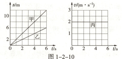 12.(2024·临沂河东区期末)甲、乙、丙三辆小车同时、同地向同方向做匀速直线运动,它们的运动图像如图 1-2-10 所示,则(