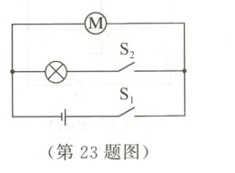 小明和同学们想要设计一个电动玩具汽车,按下开关$ S_1$,电动机M启动,玩具汽车向前行驶,再按下开关$ S_2$,玩具汽车的车灯发光,断开$ S_1$,电动机M和车灯同时停止工作。请你参与并设计出符合要求的电路图。