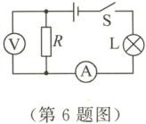 6.在如图所示的电路中,闭合开关S,电路正常工作。过一会儿,灯L突然熄灭,两个电表中只有一个电表的示数变小。若整个电路除了灯L和电阻R,其余元器件都完好,且电路只有一处故障。下列判断正确的是 ()