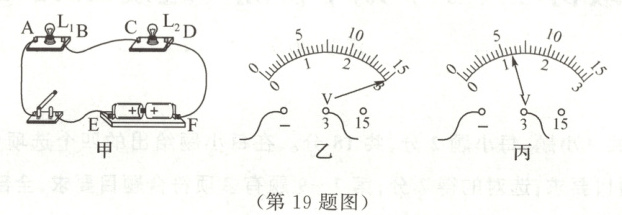 19.(6分)小明和小红用如图甲所示的电路探究串联电路中电压的规律,用两节新干电池作为电源。