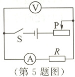 5.如图所示的电路中,电源电压保持不变,$R$为定值电阻。闭合开关,向左移动滑动变阻器的滑片$P$,则