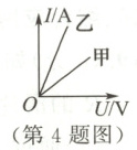 4.用伏安法测量甲、乙两个导体的电阻时,根据数据记录,画出如图所示的图像,由图像可知