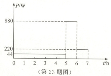 (3)某天晚上睡觉前,小明用有预约功能的电饭煲为第二天的早餐煲粥。将食材放入电饭煲内后,接通220V家庭电路,经过了待机、加热、保温三个过程,早餐前断开电源。电饭煲7h内的电功率随时间变化的图像如图所示。小明想,煮粥前的待机和之后的保温过程浪费了不少电能,我下次早晨提前起来通电煮粥,可以先看下书,等粥煮好了就直接断电。这样相比之前可节约kW·h电能。