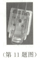 11. 如图是电工师傅随身携带的一个“保命插头”。当检修电路时,先把这个保命插头插在能正常通电的插座中,若有人误合闸送电,检修电路将发生(选填“短路”或“断路”),保护装置中的(选填“空气开关”或“漏电保护器”)跳闸,从而能避免电工师傅触电。