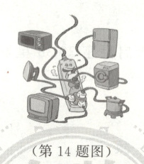 14. 家庭电路中总电流如果超过安全值,会由于电流的效应,导致线路温度过高,容易引发火灾。如图所示,电路中电流过大的原因是。