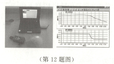 12. 如图所示,应用温度—压强传感器可以探究气球破裂瞬间,气球内气体的温度和压强的变化关系。气球破裂瞬间,气球内气体体积增大,气球内气压突然降低,同时气球内的温度,内能。
