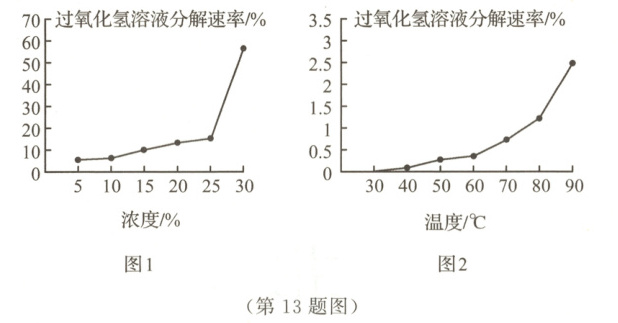 13. 项目式探究 影响过氧化氢分解的因素 (9分)过氧化氢消毒液是生活中常用的物品,项目学习小组对此消毒液展开探究。