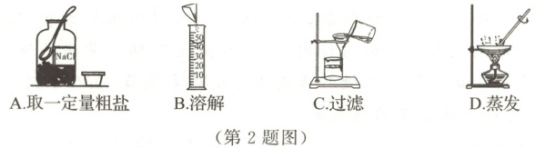 2. 如图是“粗盐中难溶性杂质的去除”实验中部分操作示意图,其中正确的是(