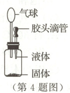 4. 下列固体和液体组合,能使如图装置中的小气球先鼓起来,一段时间后还能恢复原状的是(