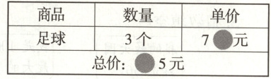 3. 体育老师买了3个足球,可是他不小心把墨水染到了小票上。请你推算一下,