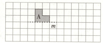 2. 画出图形A关于虚线$m$的轴对称图形B;将图形B先向右平移$5$格,再向上平移$1$格,得到图形C。$(4$分)