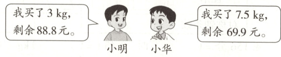 3. 小明和小华拿着同样多的钱去买橘子,每千克橘子多少元?$(6$分)
