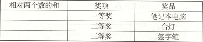 ($2$)根据转盘上相对两个数和的不同及$“$获奖规则$”$,请你为商场设计奖项,将下面表格填写完整。(6分)
