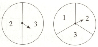 转动如图所示的两个转盘,如果停下后指针所指的两个数字相同,萌萌得$1$分,如果得到的两个数字不相同,菲菲得$1$分。这个规则公平吗?为什么?