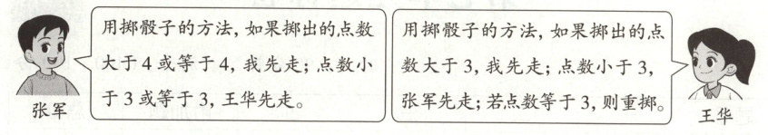 2. 易错题 张军和王华下五子棋,为了决定谁先走,两人各设计了一个方案,哪个方案公平?为什么?(8分)