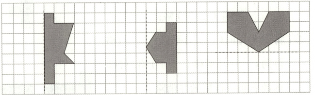 1.以虚线为对称轴,画出下面图形的轴对称图形。(9分)
